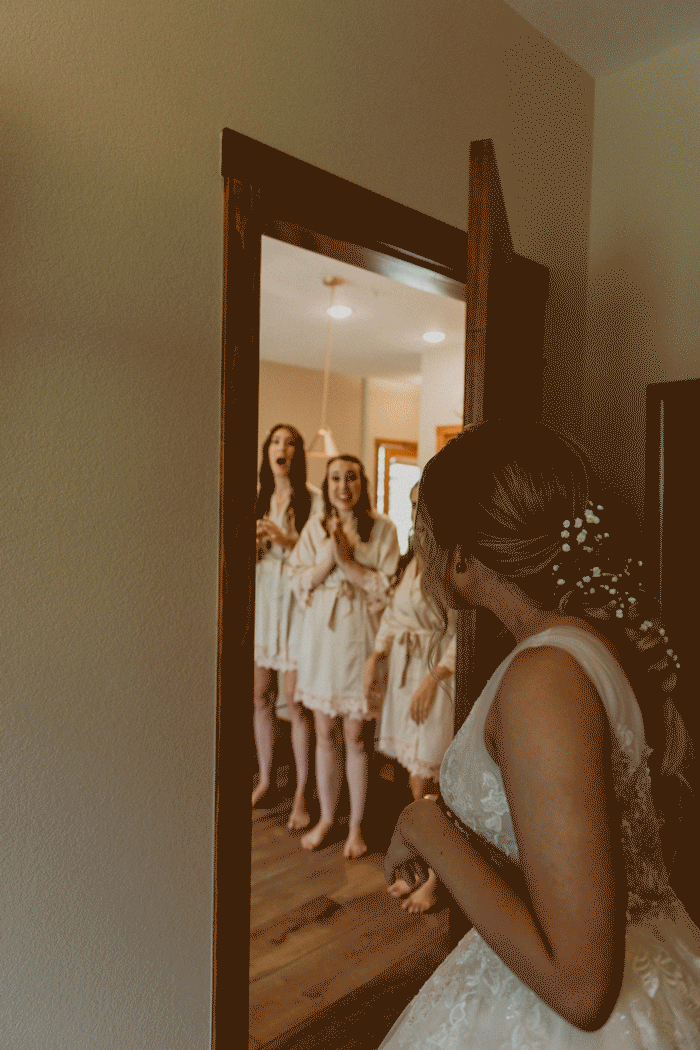 As unpredictable as Colorado weather is, the day worked in our favor! We witnessed a sunset that painted the sky with colors so beautiful, it seemed straight out of a Bob Ross painting. If you're considering eloping in Rocky Mountain National Park, be sure to apply for a SUP and buy timed entry passes in advance. But don't worry, we can guide you through the process! Following the elopement was their traditional wedding day in Estes Park, at a stunning venue overlooking the mountains. The weather was moodier, but it added to the ethereal feel of the day, amplified by Kristen's gorgeous dress and veil. The mountains created the most beautiful backdrop for Kristen and Patrick as they exchanged their vows, creating a picture-perfect scene!